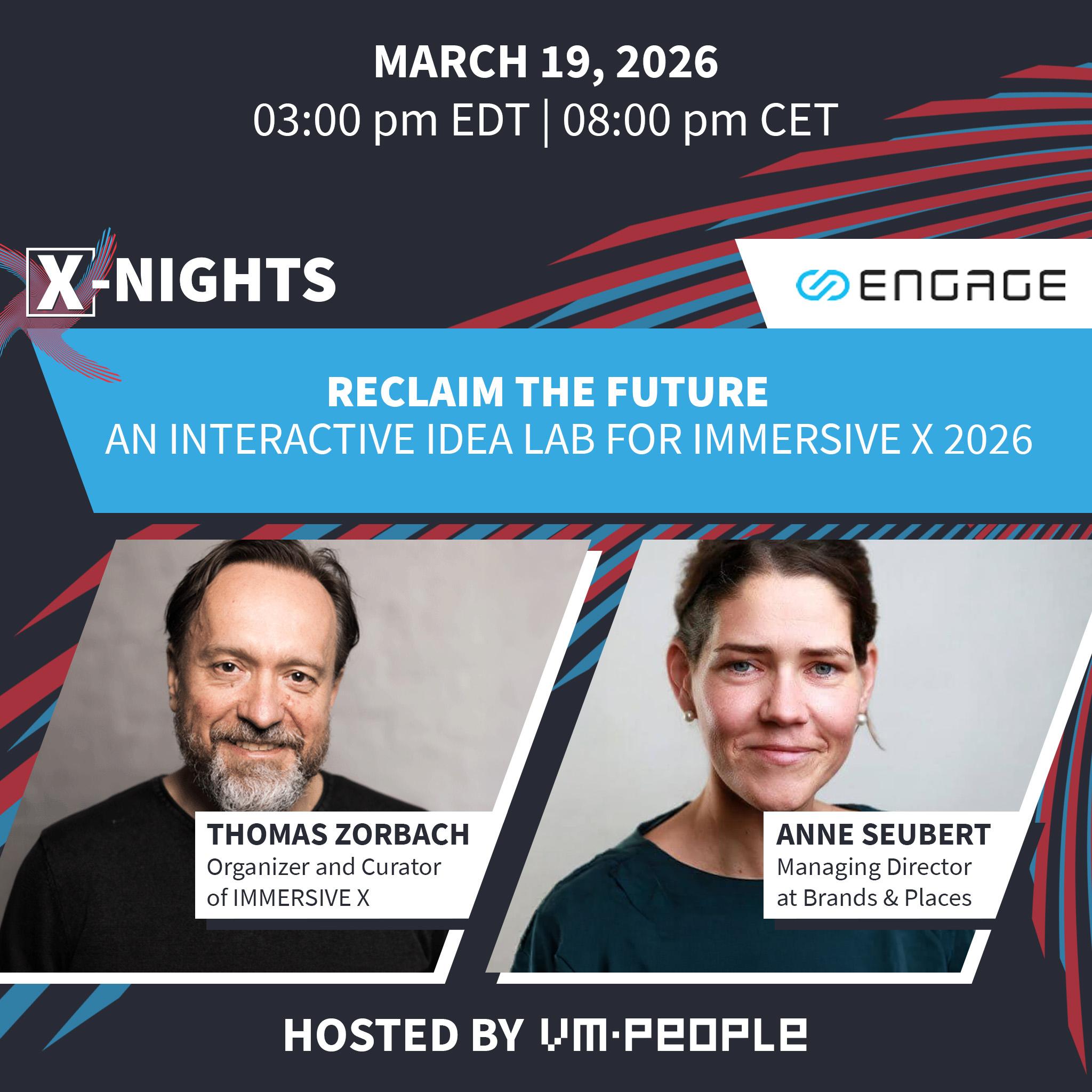 In this collaborative and participatory edition of X-NIGHT, we will explore the guiding theme of IMMERSIVE X 2026: “Reclaim the Future.”
